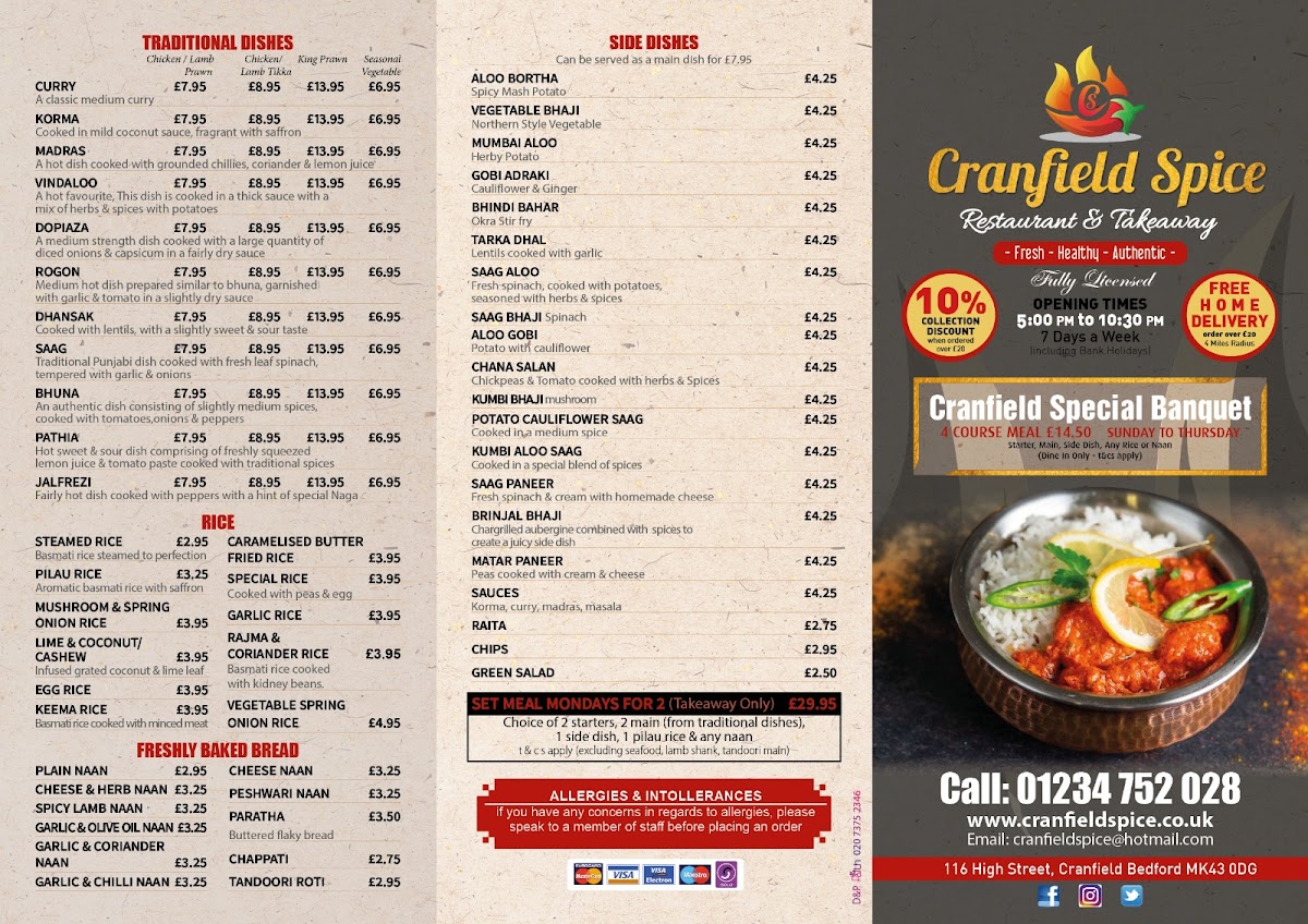 Welcome to Cranfield Spice, your ultimate destination for Indian cuisine in Cranfield. Nestled at 116 High St, this delightful eatery has quickly become a favorite among locals. Customers rave about the variety and quality of dishes, highlighting the Cranfield Special as a true culinary masterpiece. The complexity of flavors and expert preparation elevate this dish to a standout on the menu.